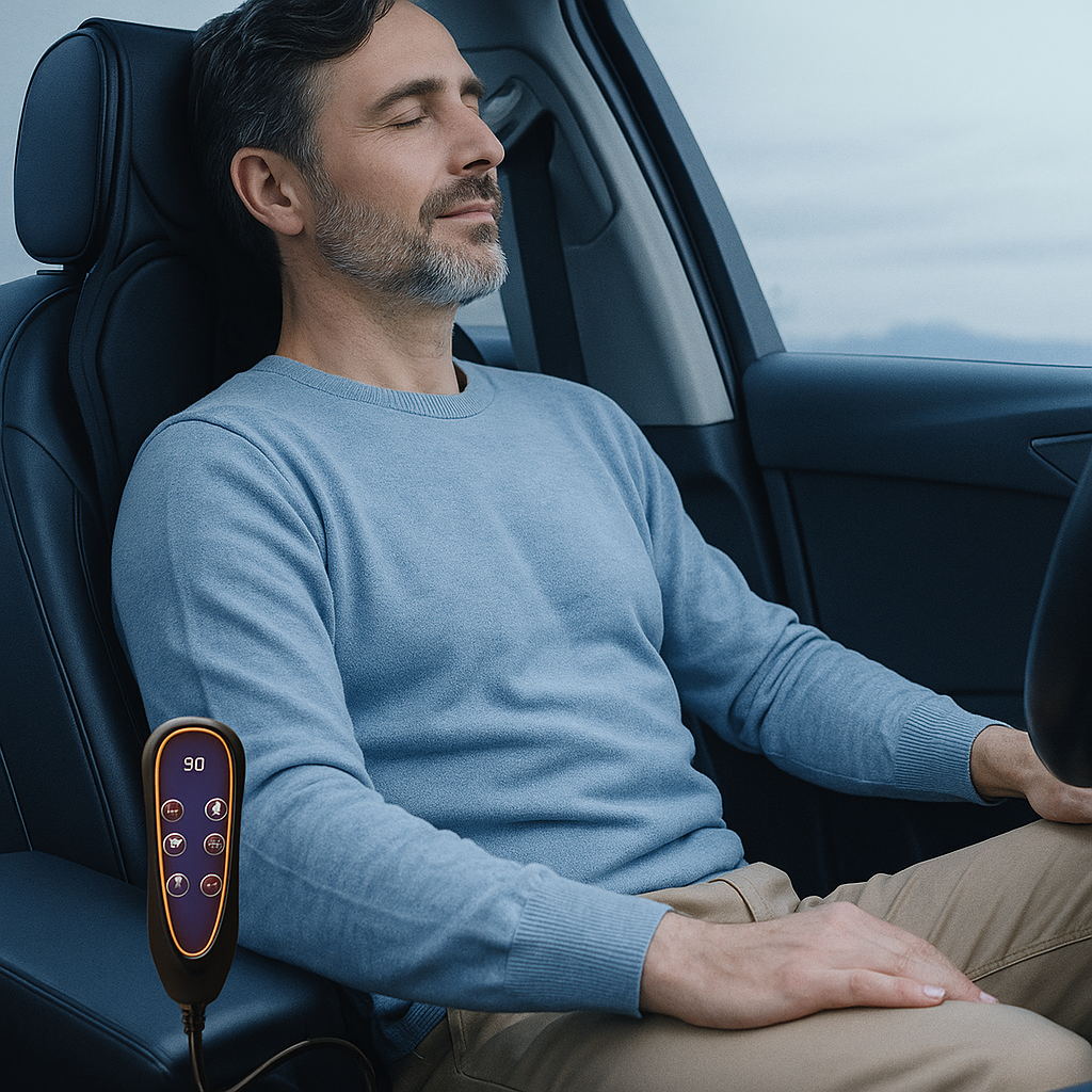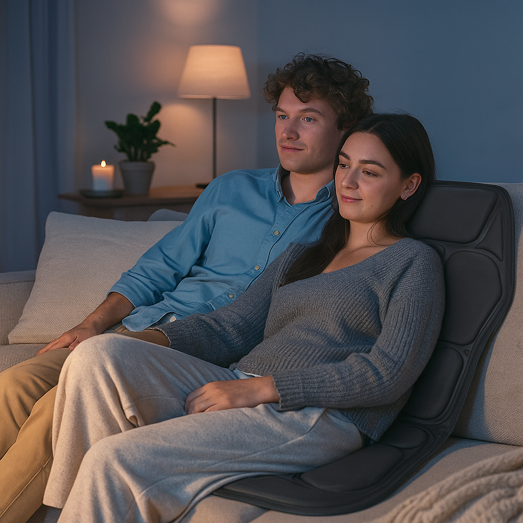 Lay the massager across a seat or chair, plug it in, and use the remote to pick your settings. Infrared heat gently warms your muscles, while vibration points knead away tightness and stress — replicating a full-body massage session right from your home, desk, or car.