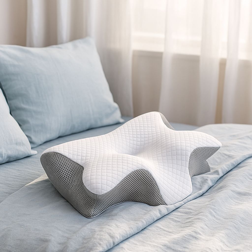 - 🦋 Shape: Ergonomic butterfly contour with neck and shoulder support zones
